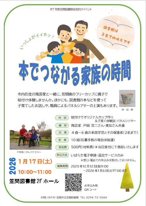 笠間図書館イベント 「いっしょがイイネッ!本でつながる家族の時間~図書館は子育ての味方です~」 参加者募集