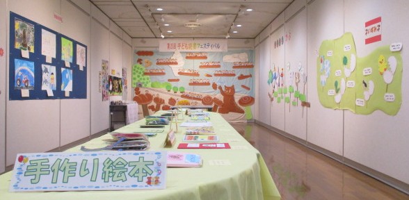 子供たちが作成した手作り絵本や読書感想画などを展示します。